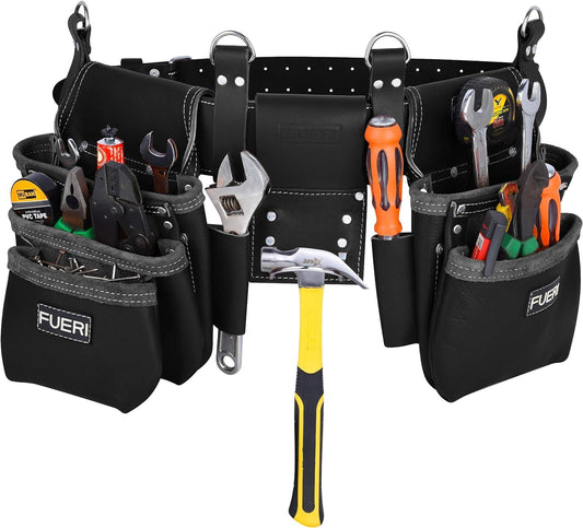 FUERI Nylon & Leather Tool Belt | Heavy Duty 19 Pockets with Foam Padded Belt...